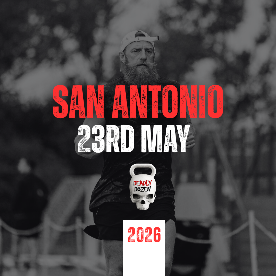 The Deadly Dozen track race involves 12 x 400m runs, which we refer to as Journeys, and 12 x exercise stations, which we refer to as Labours. The Labours only use bodyweight (BW), kettlebell (KB), dumbbell (DB) and weight plate (WP) exercises. Therefore, race training is incredibly accessible in any setting, whether in a gym, at home or outdoors. Ultimately, an individual could effectively train for the event with just a pair of kettlebells.
